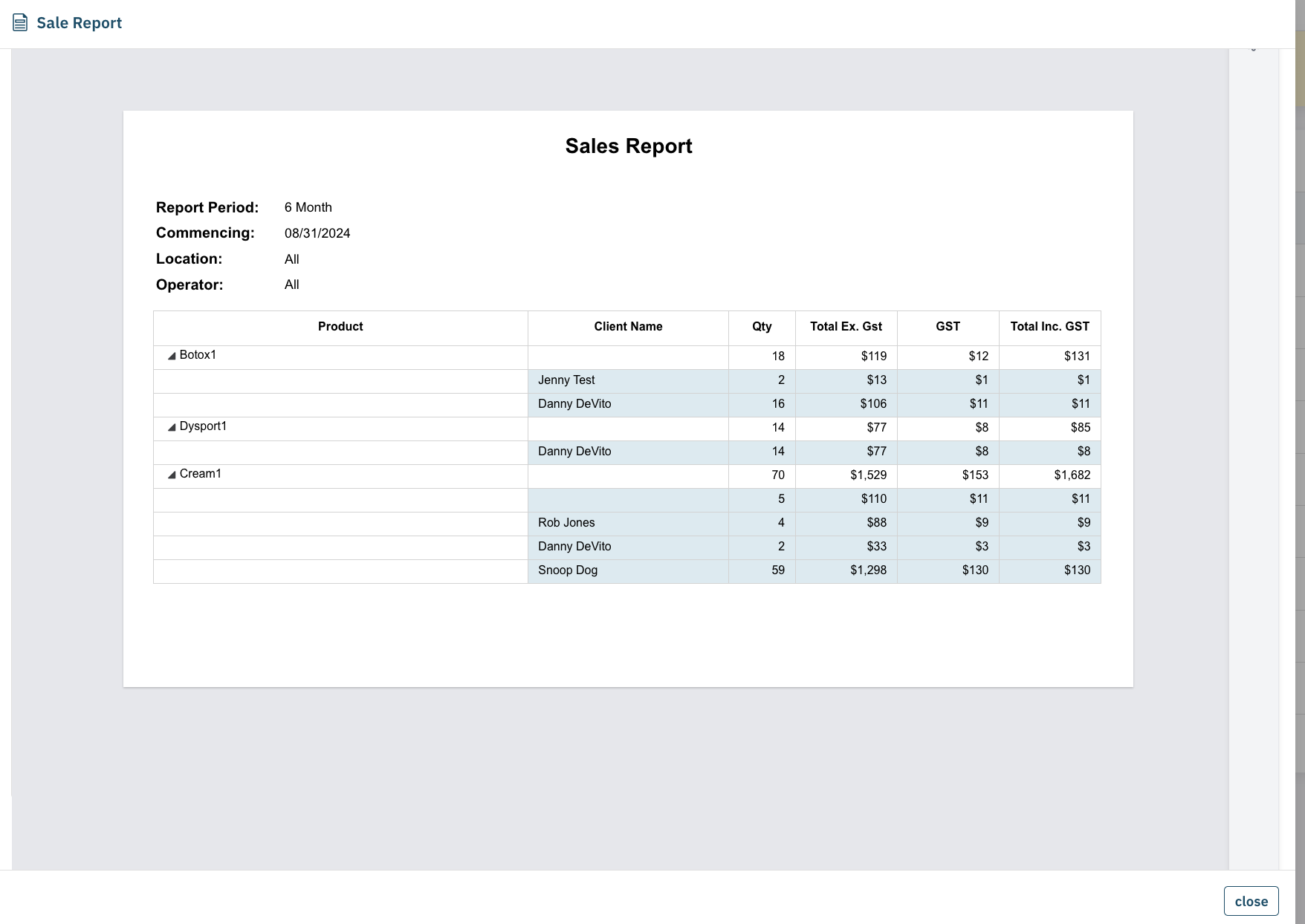 Each report type can be customised based on your preferred location, operator, and time period. If you need a custom report created, please contact the Cosmesoft Support team for assistance.