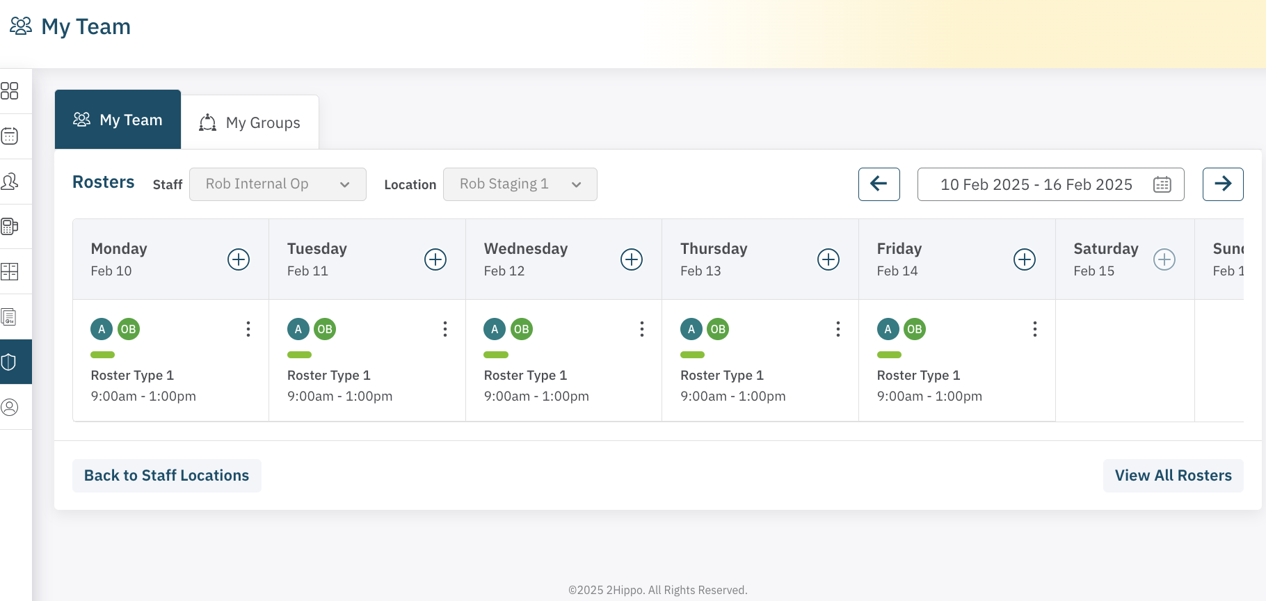 - Self-rostering is a popular choice for clinic practitioners. Managers or Admins will need to adjust permissions to allow access to this function.