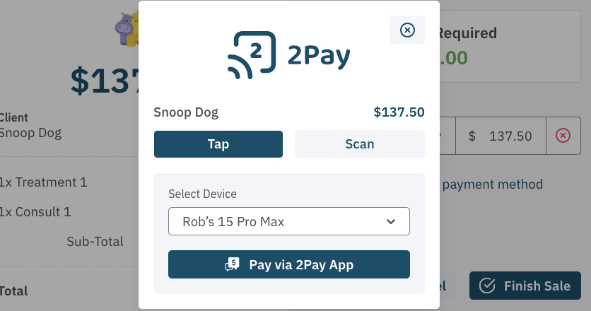 Sometimes, your client might not be able to tap or scan, for example, if they’re booking over the phone and need to pay a deposit. No problem! With 2Hippo 2Pay, you can send a payment link by simpy paying using using the Client Account payment method. The client can then securely make their payment at their convenience, from any device they choose.